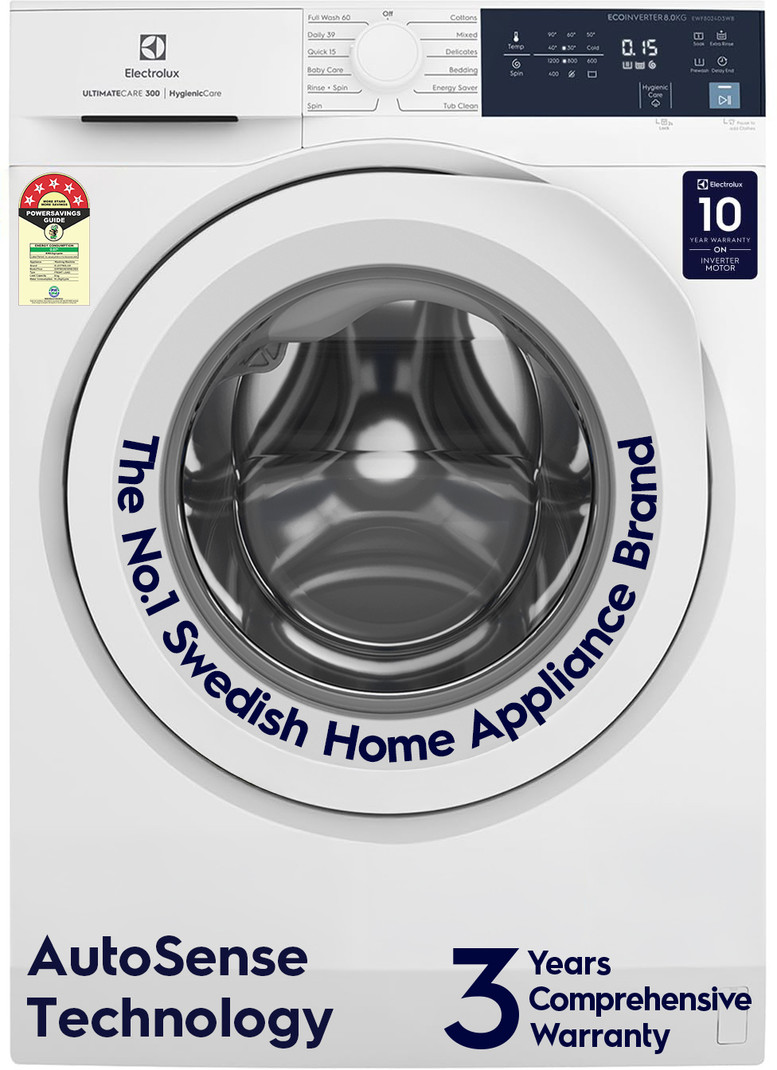 3 Year Warranty, AutoSense Technology, Full Load Vapour Wash, Hygienic Care | EcoInverter Motor | UltimateCare 300 | EWF8024D3WB